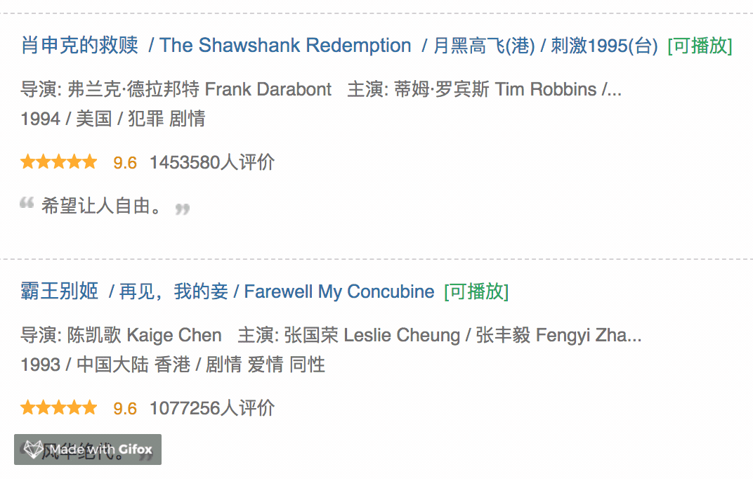 今天我们爬取了豆瓣电影TOP250 的第 1 页数据(也就是排名最高的 25 部电影),下一篇我们讲讲,如何抓取所有的电影名。